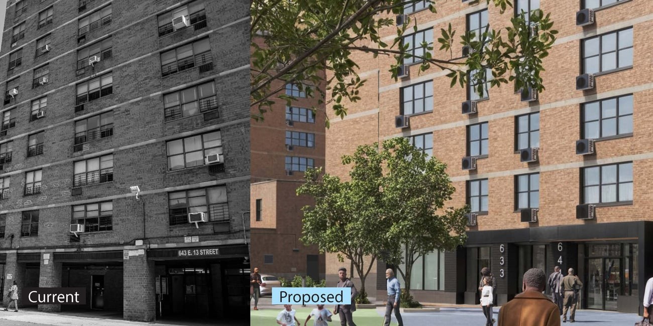 Financing for this PACT modernization of Campos Plaza II is made possible in part by the approximately $19.5 million sale of air rights in 2024 to Madison Realty Capital, the owner of 644 East 14th Street, to build a 196-unit 421-a building with a 25 percent preference for NYCHA residents. An additional $1.3 million in grant funding will be provided by NYSERDA for the purchase of the Midea window heat pump units.