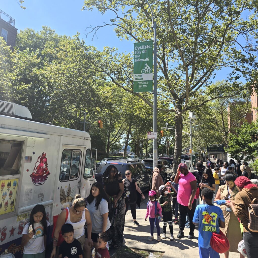 “As we arrived at each destination on the tour, NYCHA staffers from Resident Partnerships and Civic Engagement were there waiting for us,” said Leroy Williams, NYCHA’s Vice President of Resident Services. “They helped make sure that each community knew about what was coming – not just the free ice cream but also the other giveaways: the candy, the squishy toys for the kids, everything. It was such a fun day! Next year, we intend to make it happen again, and we’ll bring it to five new developments to make sure we spread the joy around!”