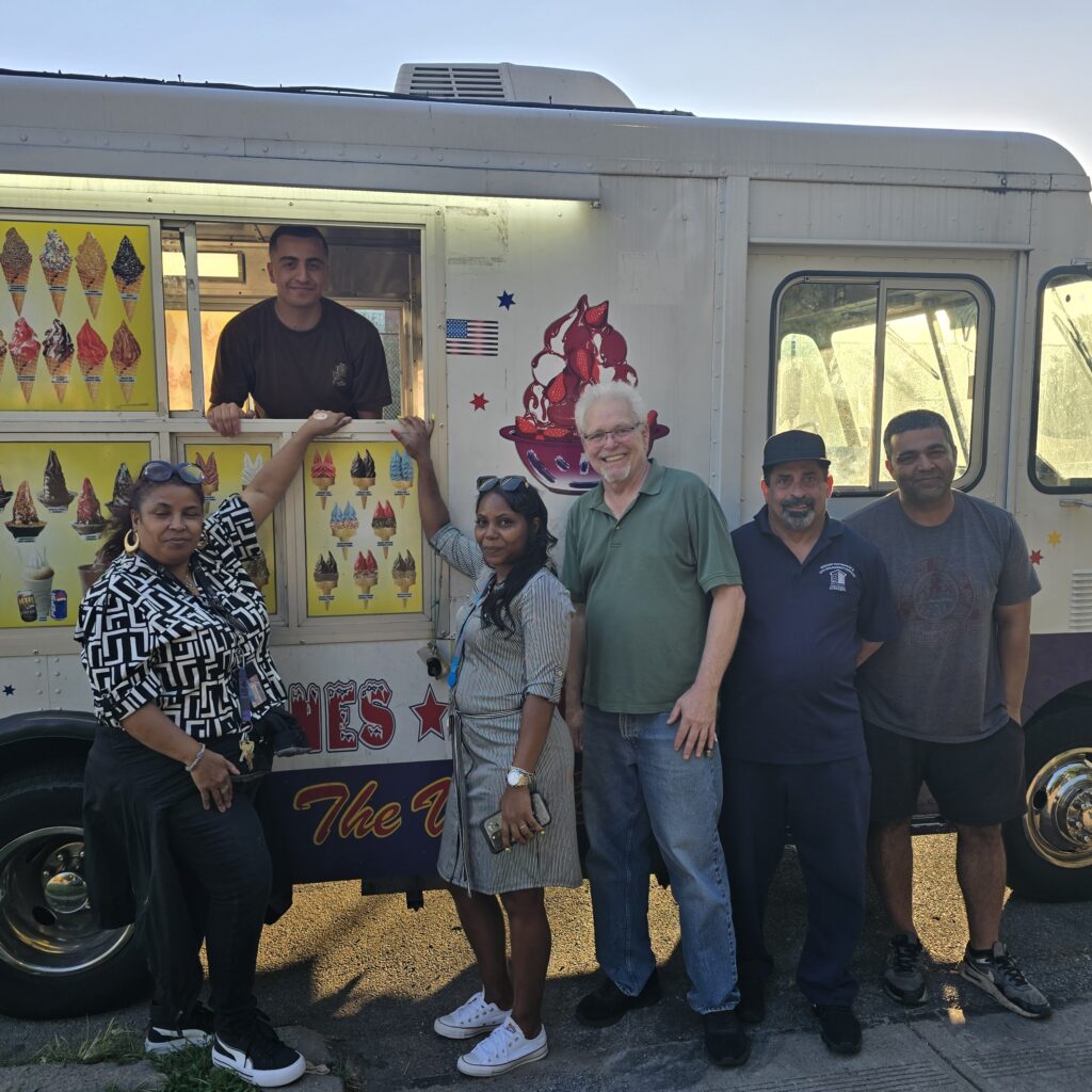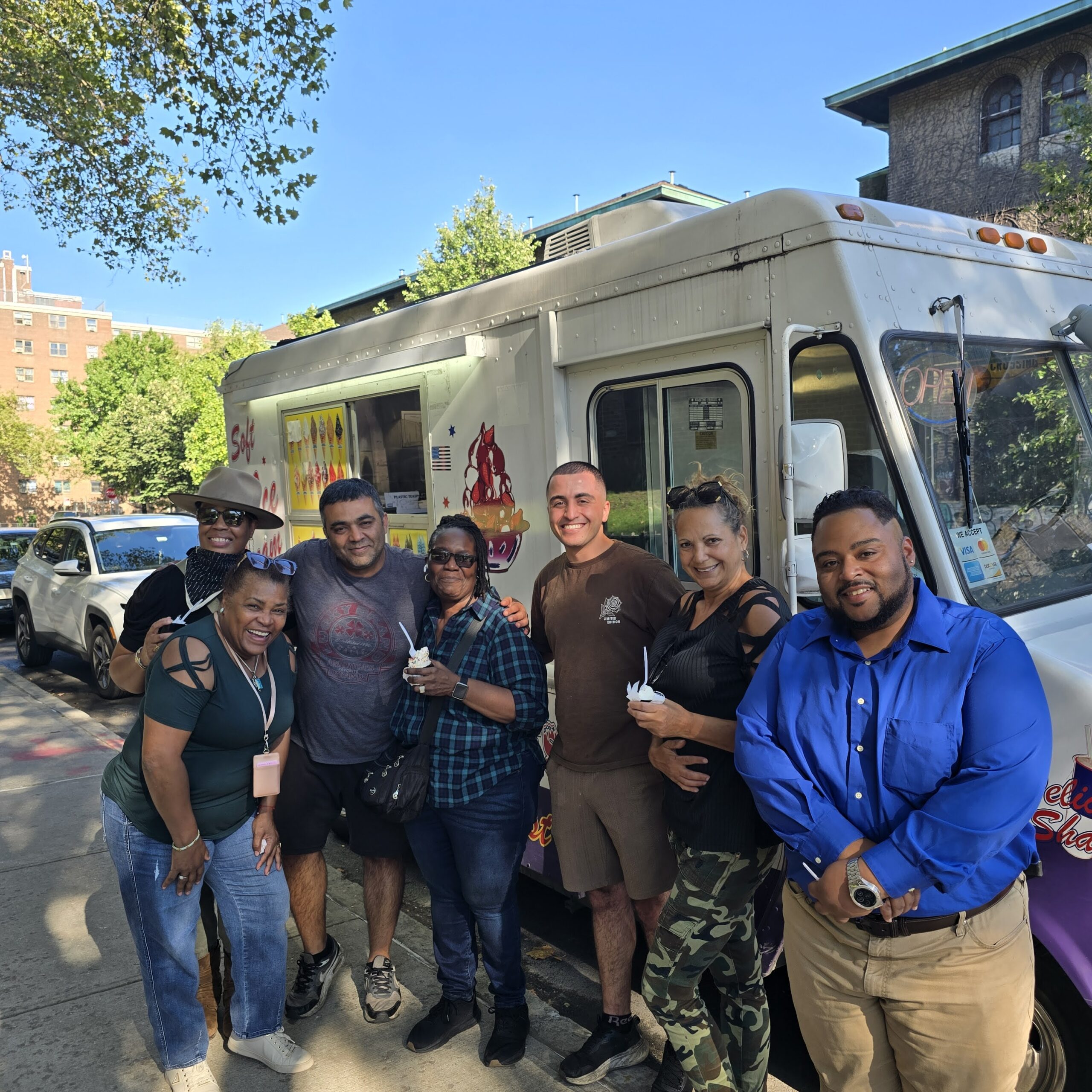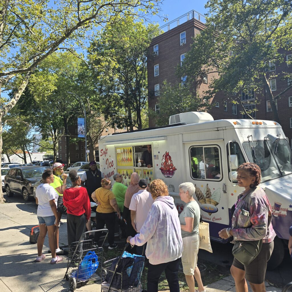 The Soft Serve and Smiles event kicked off in 2024 and serves as both an unofficial back-to-school celebration and a fond send-off to the summer season. This year, over one thousand ice cream cones were presented, free of charge, to community members at NYCHA developments across the city. A single ice cream truck and driver, enlisted by the PHCF and its Executive Director Alex Zablocki and accompanied by a host of NYCHA staff and resident leaders, carried out the mission, visiting five NYCHA developments across all five boroughs: St. Mary’s in the Bronx; Carver Houses in Manhattan; Cooper Park in Brooklyn; Woodside in Queens; and South Beach in Staten Island.