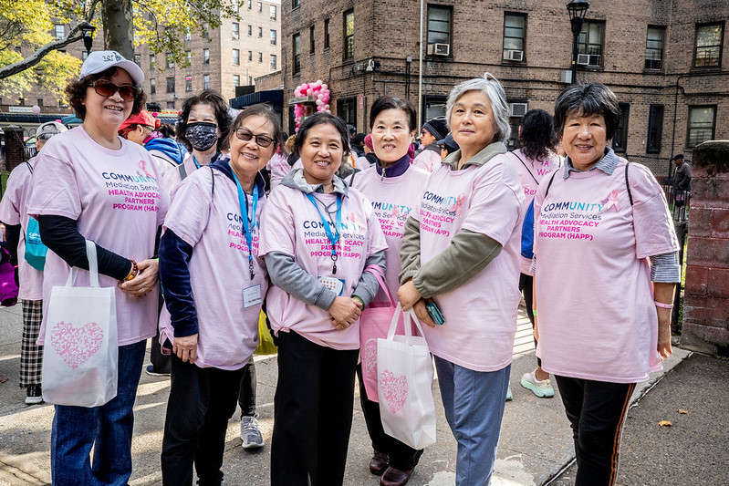 On October 22, Community Mediation Services (CMS), a partner in the City’s Health Advocacy Partners Program (HAPP), hosted its first breast cancer awareness walk, which began at Queensbridge Houses and ended in Queensbridge Park. With more than 150 walkers included NYCHA residents, community health workers, and local leaders, the walk brought the community together to raise awareness about breast cancer and promote early detection.