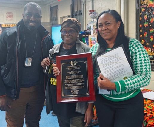 At one development in the Bronx, resident leaders have paid special tribute to the TEMPO program and dedicated lead abatement staff for their efforts to help ensure healthy living spaces for neighbors. During Black History Month this past February, Princella Jamerson, President of the Mill Brook Houses Resident Association, presented service recognition awards to Oluwaseyi Olaniran, Lead Abatement Program Manager in LHCD, and Vera Owens, a TEMPO Outreach Manager working with the firm Johnson & Asberry. Mr. Olaniran was commended for his “exceptional ability” to troubleshoot and coordinate lead hazard repairs in residents’ apartments, while Ms. Owens was recognized for her unwavering dedication to addressing resident needs.