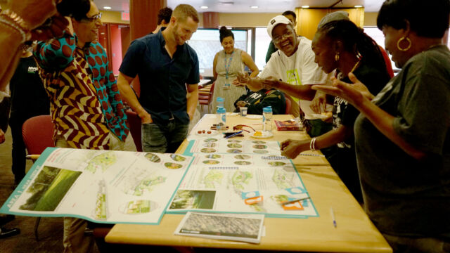 • Cloudburst Resiliency at South Jamaica Houses: A planning program developed in coordination with the NYC Department of Environmental Planning that is the first placemaking green infrastructure project at a NYCHA campus. The project will eventually result in the first publicly funded submerged water plaza in Queens, as well as retention tanks under area basketball courts aimed at mitigating flooding.