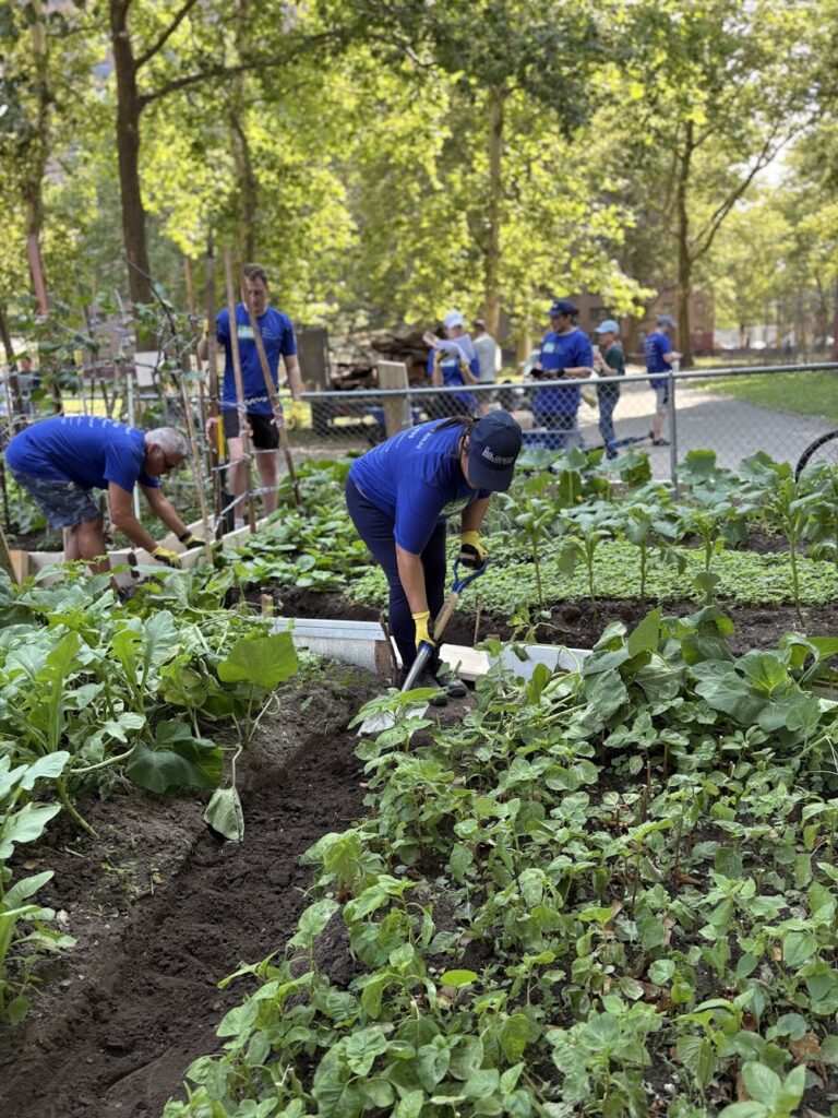 On July 24, Marlboro Houses’ resident gardeners received a major boost when more than 200 volunteers gathered at the Brooklyn development to revitalize its 50-year-old community garden. Volunteers replaced makeshift planter walls, replenished soil, and improved pathways to ensure the garden can continue to serve residents for years to come.