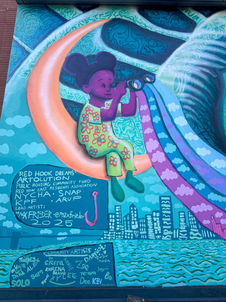 For the community, Red Hook Dreams is much more than another example of public art — it is a shared story, a daily reminder of community strength, and a vision for the future shining from the walls of the place they call home.