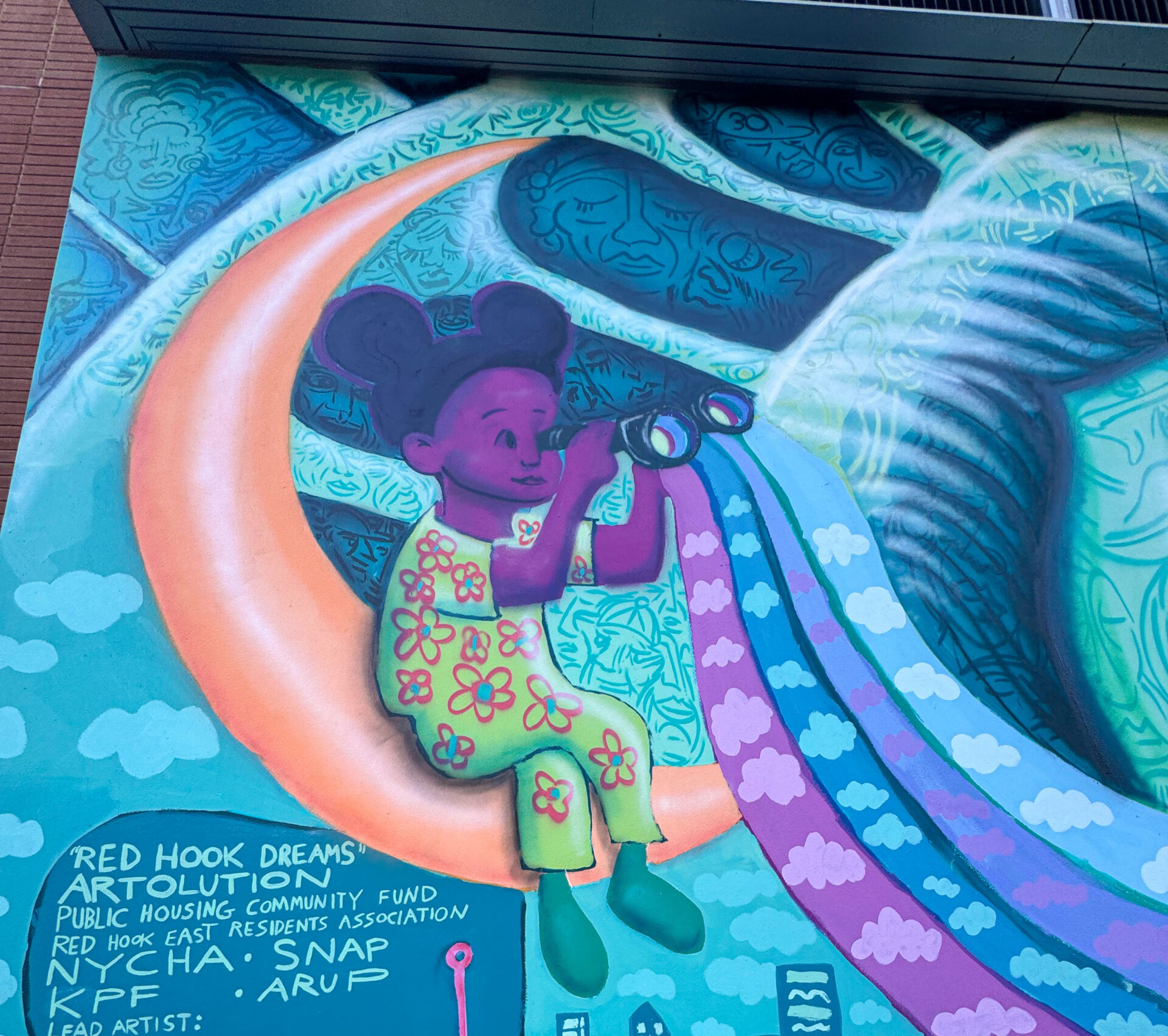 The Red Hook Dreams project was made possible through a network of partnerships and funding support. Alongside the Public Housing Community Fund, Artolution, NYCHA, and the Red Hook East Community, the mural received backing from Snap Inc., the makers of Snapchat.