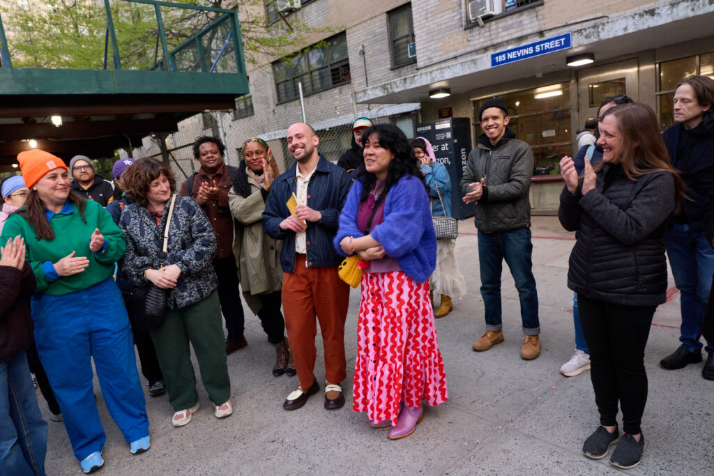 The sculptures were created by local artist duo Mookntaka, selected through an open call by a committee of residents and community leaders in collaboration with Van Alen. The installation at Wyckoff Gardens was carried out in close coordination with the Wyckoff Gardens Resident Association and the development’s property management staff.